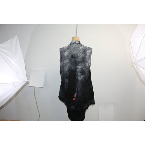 This vest is ultra-artistic and versatile, made out of mixed silks, cottons and other textured fabrics, pieced together, with extra texture at the seams with raw edging and other 'tricks'...