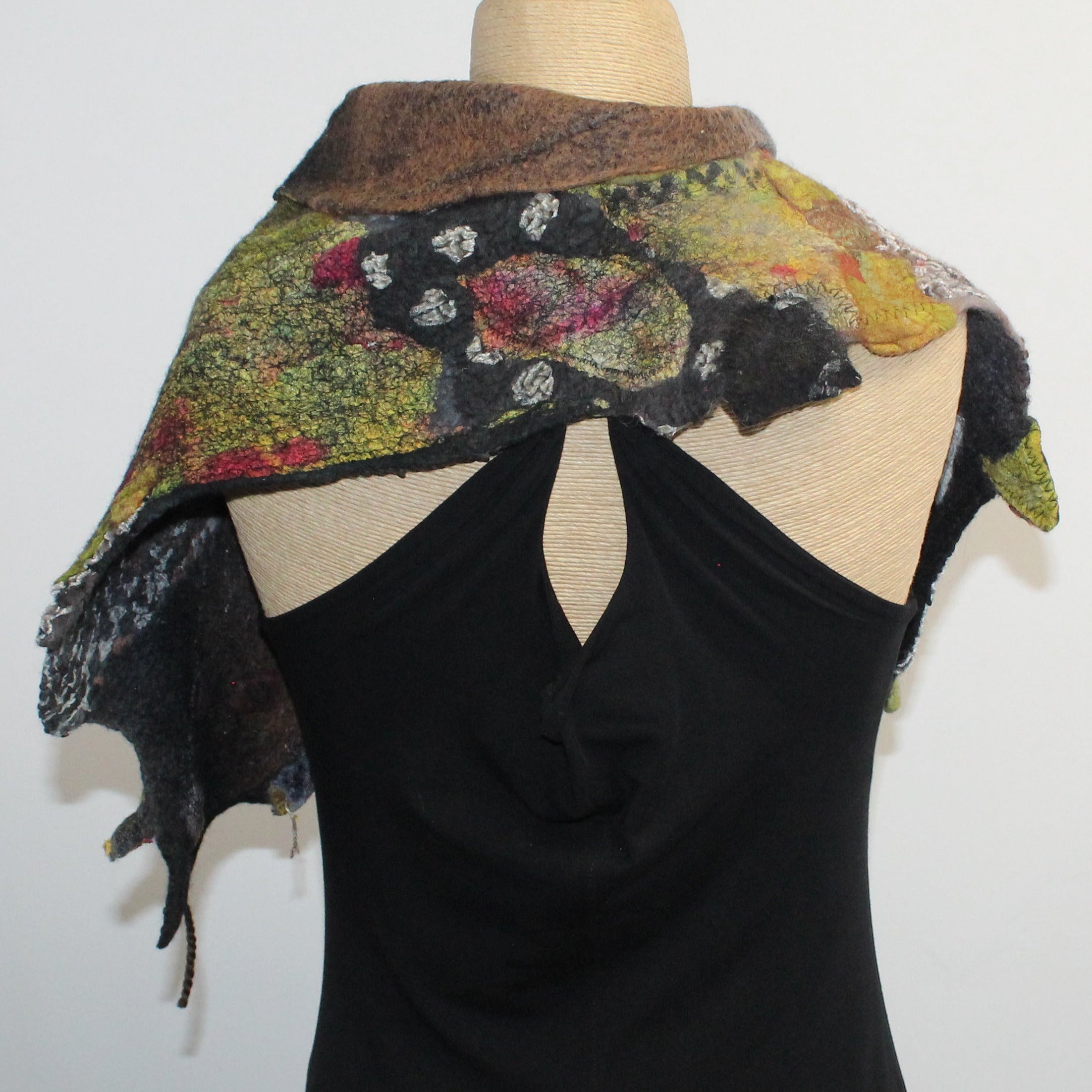 Beth Marx Collar Scarf, Yellow/Green With Rust Felted Brooch
