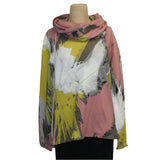 This colorful, abstract patterned top in combinations of red, orange, yellow and other brights is digitally printed from Andrea’s original abstract paintings onto the fabric to create a dynamic combination of color and pattern. A coordinating detachable infinity scarf that may be worn long or folded over offers multiple styling options. The top is designed in a textured knit with 3/4 length sleeves, a round banded collar, and an easy, comfortable fit. Since each piece is handmade, the placement of the designs in each size may vary slightly from the pictures. 95% organic cotton and 5% spandex. Gentle cool wash. Lay flat to dry or tumble dry low.
