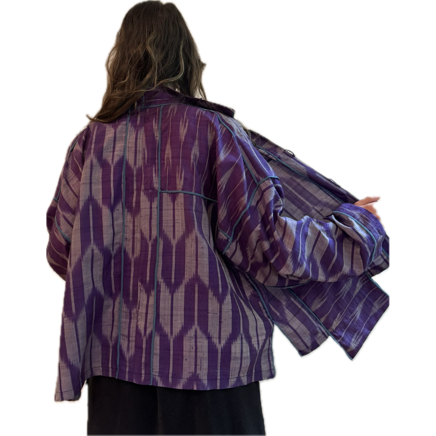 Judith Bird Jacket, Purple Ikat, Purple/Grey, Turquoise Trim, L
